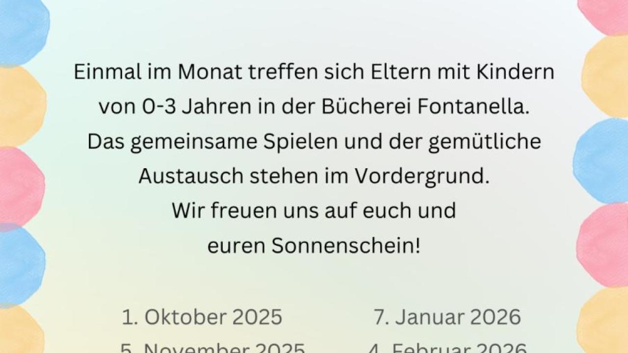 Einmal im Monat treffen sich Eltern mit Kindern von 0 - 3 Jahren in der Bücherei Fontanella.